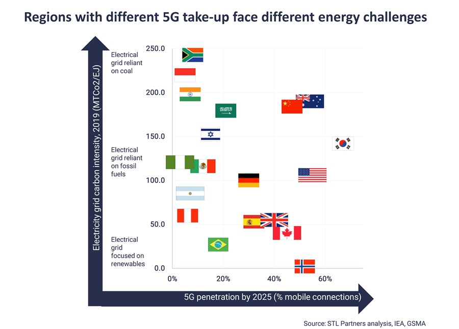 Le previsioni suggeriscono che le reti 5G potranno risultare fino al 90% più efficienti per unità di traffico rispetto alle reti 4G, pur avendo bisogno di molta più energia a causa della maggiore densità di rete, della forte dipendenza dai sistemi e dalle infrastrutture IT, dell’aumento dell’utilizzo della rete e della crescita accelerata del traffico.